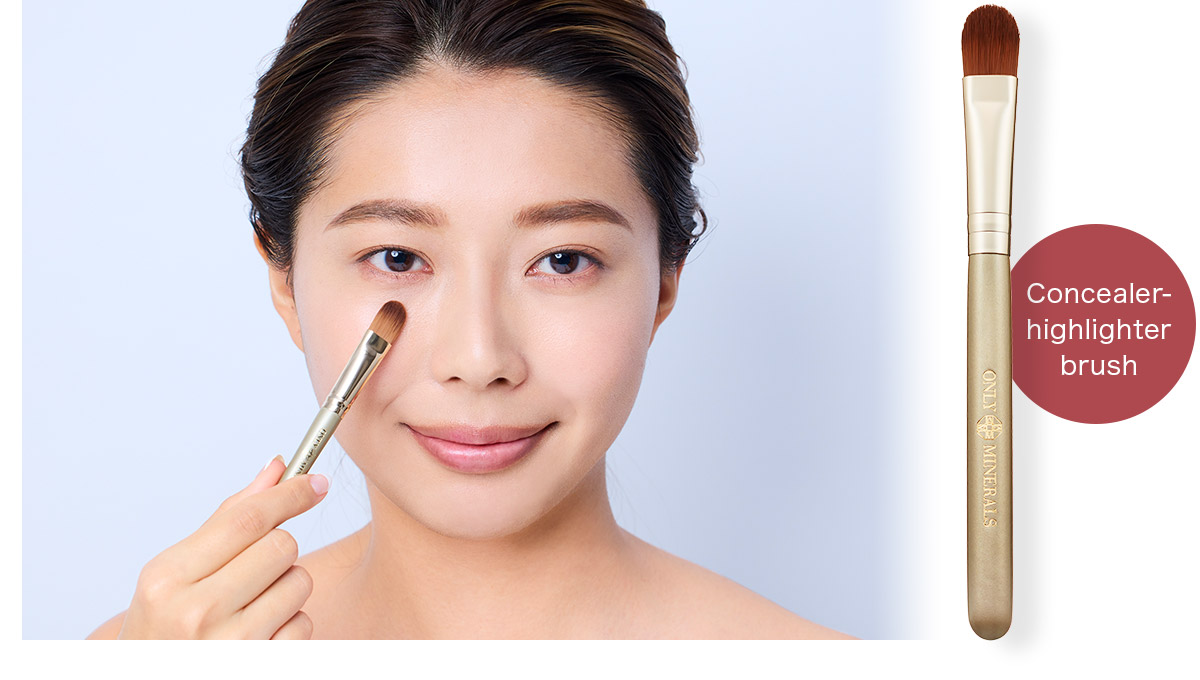 Use the concealer-highlighter brush for heavier coverage of pores and dark spots.