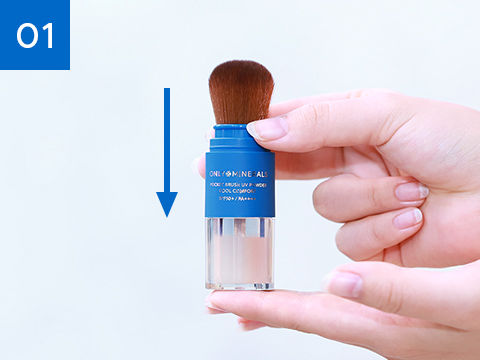 ブラシとUVパウダーが一体に。ブラシは刺激を抑えたやさしい肌あたり。