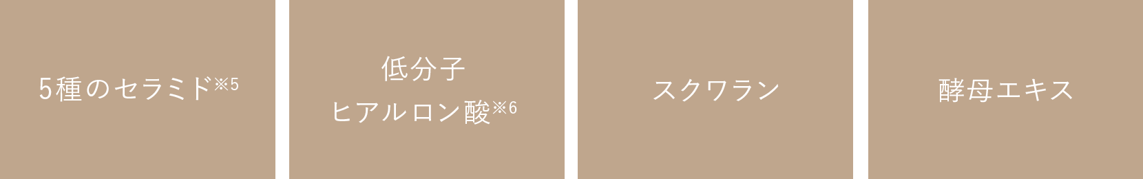 ※4 紫外線散乱剤 ※5 セラミドNG,セラミドAP、セラミドAG、セラミドNP、セラミドEOP(すべて保湿成分) ※6 加水分解ヒアルロン酸(保湿成分)